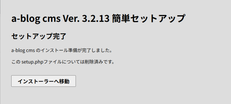 ダウンロードしたzipファイルを解凍し、setup.phpをwebサーバにアップロード。